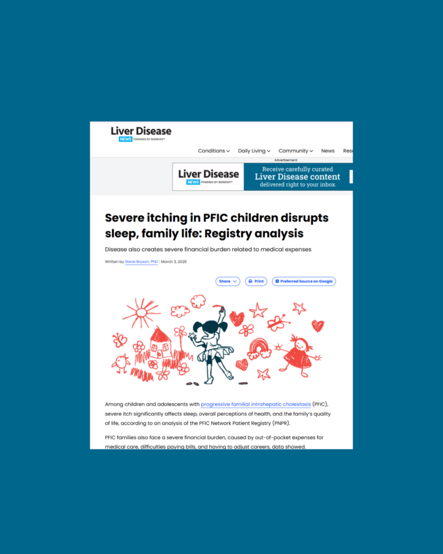 Data from the PFIC Network Patient Registry is making news! Liver Disease News recently published an article highlighting the first peer-reviewed paper reporting findings from our registry, covering how pruritus impacts sleep, family quality of life, and the financial burden faced by PFIC families. It’s a great plain-language overview of the paper for anyone who wants to learn more.